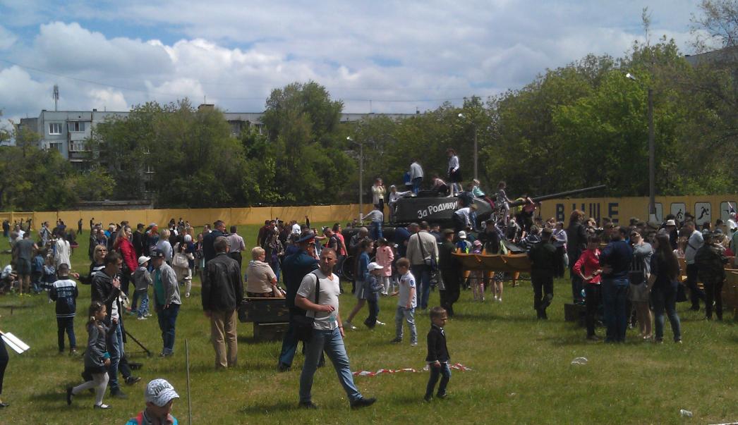 Выступление - реконструкция боя 2 мировой, и угощение гостей кашей, один из памятников в части.