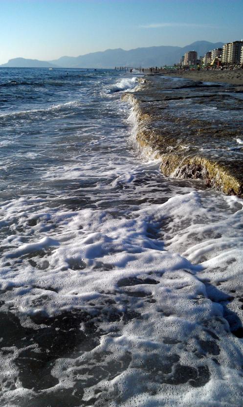 Вот как выглядит берег моря в Махмутларе (пригород Аланьи) и типичный турецкий пляж.