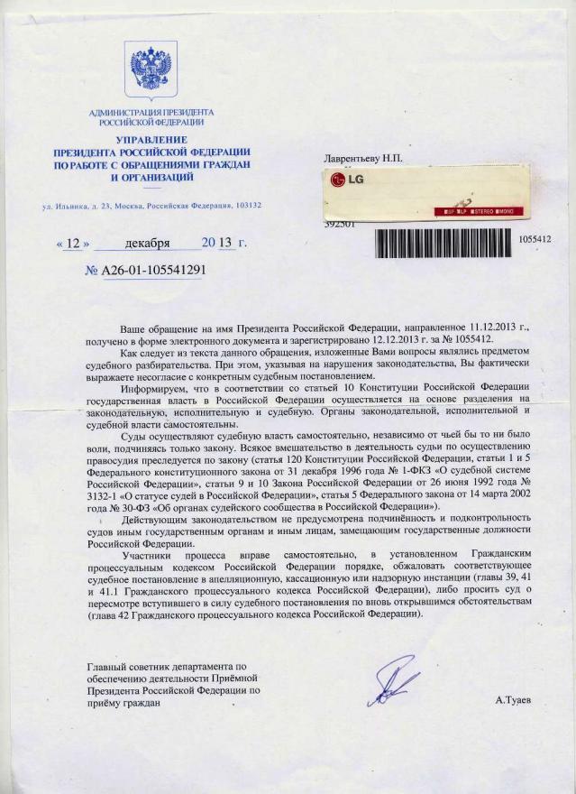Суд в государстве – палка-выручалка, любым чиновникам – громоотвод, их произвол судебным плесть не жалко, лишь бы судить людей наоборот: назло ведь Конституции девизам отвержена от истин правда-мать… Пока судья в кавычках «независим», коррупции расти и процветать! Чем больше независимость у судей, – тем должен быть суровее контроль для истребления их лжи орудий, но Плигин В.: «Проверки отфутболь! Суд – наша «крыша», мы контроля выше, мы власти, над толпою – господа, по конституции – народ! Мы пишем законы для коррупции всегда. На взятки провоцируем законом: единой партии зовёт нужда судом людей России грабить с громом и жалобы не принимать сюда. Госдумы депутаты мы – забавно, а вы – рабы пред Дьяволом в судах; в отписках пишем это мы исправно, дискриминируем добро в правах. Кто спорит с мафией – неадекваты, – мошенников ведь нам права даны, коррупция, чтоб жили мы богато за счёт обманутых трудяг страны. То смысл идеологии господской, властям ведь Бога заменяет суд, что силам тьмы прислуживает броско, – все власти не по Библии живут. Дискриминация всех потерпевших для-ради мафии – вот судей роль». Так отвечают все, от зла тупевши. Такой цинизм продолжится доколь? Суд топчет всё, стирая след от пяток, – права людей растоптаны лежат: «Единоличные дела для взяток обжалованию не подлежат». Безвыходность ног под собой не чует, – зависимость от мафии судов простых людей презрением линчует: нас каждый аферист убить готов. Грех провокации коррупций – это: от бесконтрольности со стороны властей бессовестных террор поэта судебной ложью, что скверней войны… Российский суд и мафия – синоним, – циничней в мире этом нет родни! А беззаконие мило обоим от полной безнаказанности их. Я неоднократно писал в Госдуму РФ, предлагая улучшить конкретные законы, которые провоцируют на мошенничество и на коррупцию, но в ответ председатель комитета по законодательству В.Н. Плигин из партии "Единая Россия" прекратил со мной переписку. Председатель партии "ЕР", как и С.Е. Нарышкин, проигнорировал мою жалобу на него. Все они нарушили статьи 3 и 19 Конституции России. Как можно голосовать за эту партию "ЕР"? Неопровержимый бунтарь Николай Лаврентьев Тамбовский http://contrsud.mybb.ru/viewtopic.php?id=84
